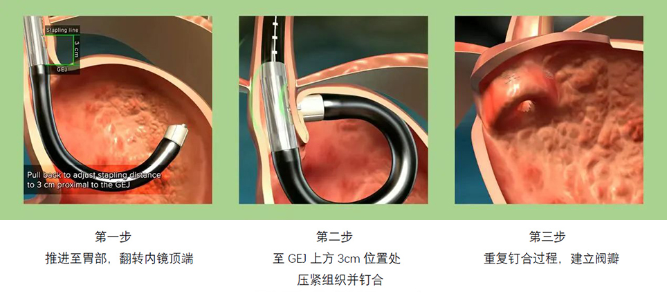 MUSE内镜下胃底折叠术系统治疗胃食管反流病,操作简单,无创伤恢复快,是经人体自然腔道在内镜下实施的手术,通过将胃底钉合在食管下端行部分胃底折叠术,增加胃开口部位的压力,恢复His角,重建胃食管阀瓣,建立阻止胃食管反流的有效屏障。